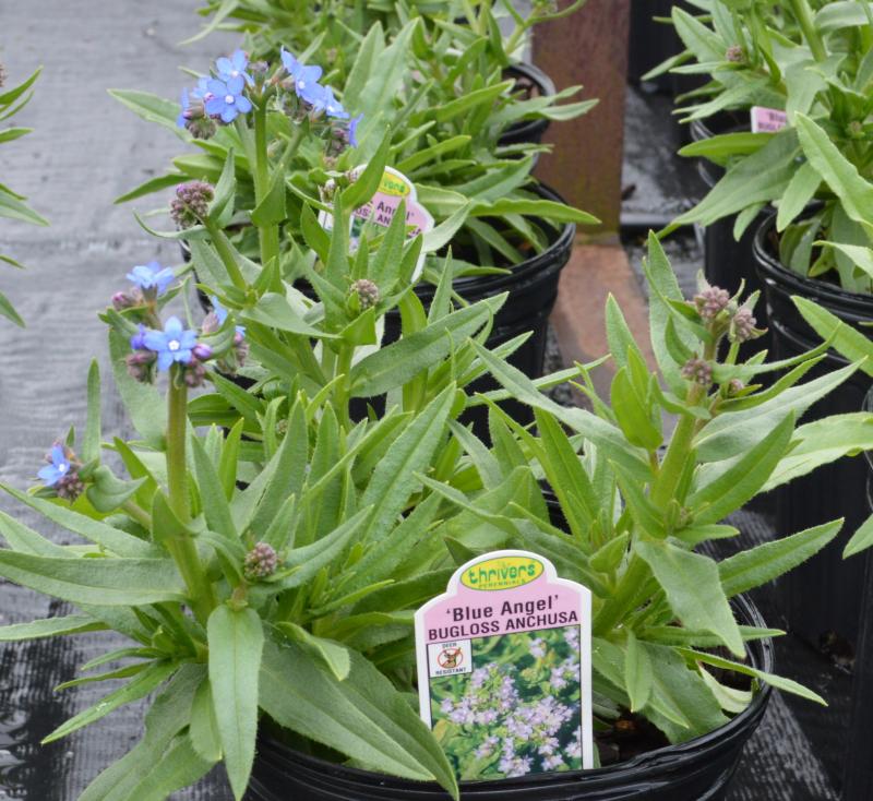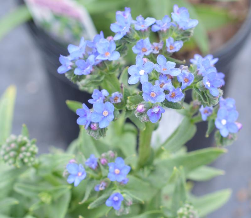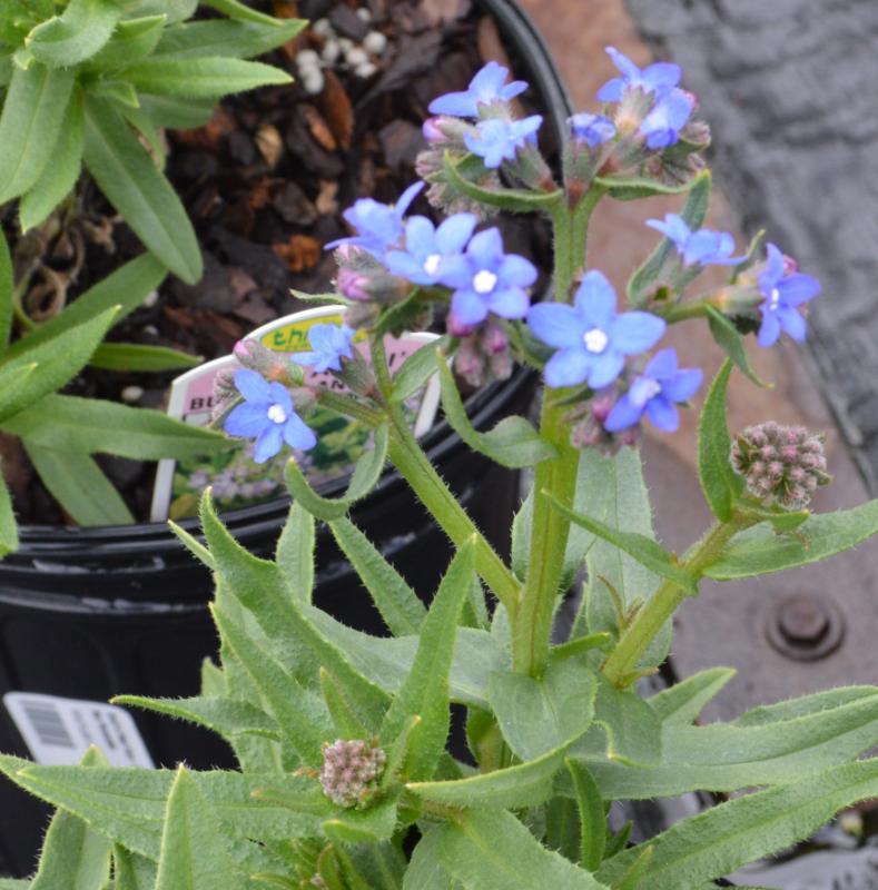 A short, compact strain with widely branched stems. Coarse, with hairy leaves and bristly stems that bear innumerable clusters of brillant blue flowers. Long bloom period. Easily grown in ordinary garden soil in full sun to partial shade. Zone 6-8. Plant in middle of sunny border for true blue color. Plant with bright flowers such as poppies, yarrows, peonies, coreopsis, daisies, and ornamental grasses.