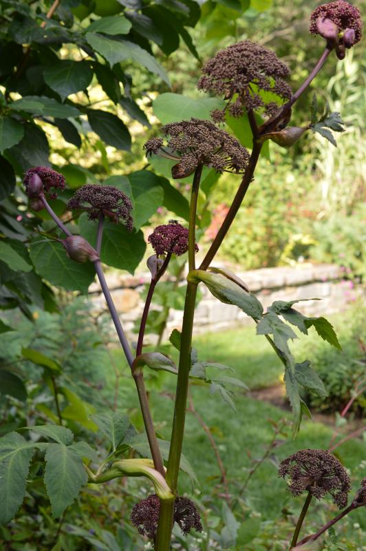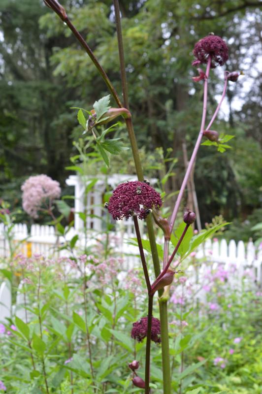 Large branching structure with reddish/purple stems and flowers in the summer. Grows best in partial shade with rich, moist soil. A bold statement plant in the border or a wood's edge. Plant with cimicifugia, aconitum, monarda, and turtleheads. Zone 5-9.