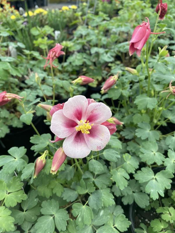 Hardy, compact plant with a delicate ferny appearance.  Upturned blue and white spurred blooms on sturdy but thin stems that wave in the breeze. Good cut flower. Deer resistant. Easy to grow in full sun or part shade in moist, but well-drained, soil. Plants do well on a slight slope.  Zone 3-8. Plant in mass plantings in wild natural settings or in borders for showy spring bloom with peonies, iris, daisy, geranium, spring phlox, and digitalis.
