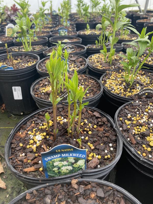 Tough very upright stem with broad, elliptical, opposite green leaves. Large umbrella shaped flowerheads on tall stems make seedpods that are stunning in dried arrangements. Full sun in moist to wet soil. Tolerates heat well. Great for moist meadows and pond sites. Zone 3-9. Excellent for use in a rain garden. Plants have deep tap roots and are best left undisturbed once established. Foliage is slow to emerge in the spring. Plant with queen of the prairie, ligularia, cardinal flowers, Siberian and pseudocorus iris.