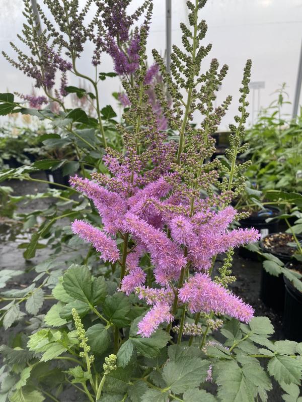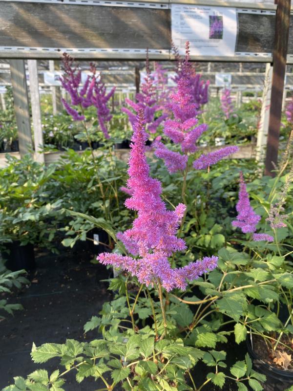 Fantastic new color for 2020. Large flower plumes are purple with a hint of blue on sturdy stems that wont flop over. Attractive dark green foliage. Once planted they can be left alone for decades as it is a completely trouble free plant, their one requirement being moisture. Plant in full sun in boggy area or part shade in moist rich soil. Zone 3-8. Plant in mass along ponds or streams. Combine in shady border with ferns, hostas, lady’s-mantle, Solomon's seal, and lungworts.