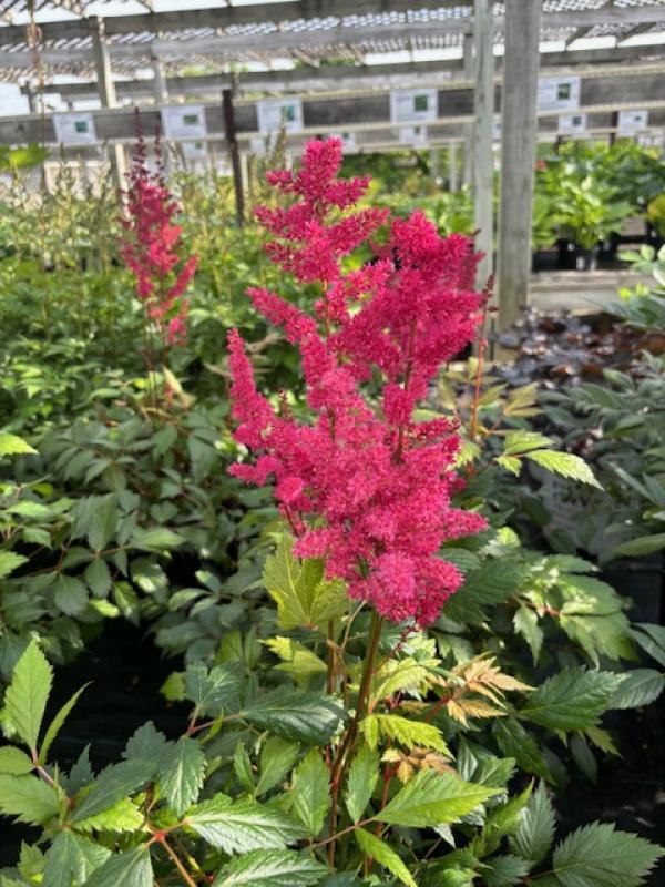 This RHS award winning variety features an attractive mound of fern like, bronze foliage. As the summer progresses, the foliage will turn a dark green. Relatively trouble/pest free plant. Vivid, deep red plumes are held above the foliage. Great option for cut or dried flowers. Plant in rich, evenly moist yet well draining soil in full shade to part sun. If planted in a sunny spot be sure to maintain adequate moisture. Deer and rabbit resistant, attracts pollinators.