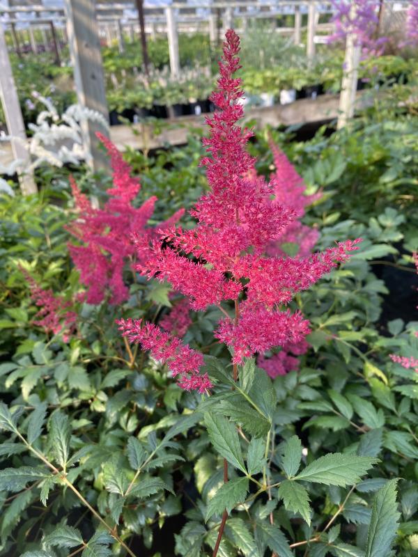 Regal, rugged, beautiful, and pest free plants with green foliage that is deep cut and feathery. Plants grow from fibrous rooted crowns that form clumps. Colorful plumes brighten shady areas. Salmon-red, dense, feathery, plumes held above the foliage. Great option for cut or dried flowers. Plant in rich, evenly moist yet well draining soil in full shade to part sun. If planted in a sunny spot be sure to maintain adequate moisture. Deer and rabbit resistant, attracts pollinators.
