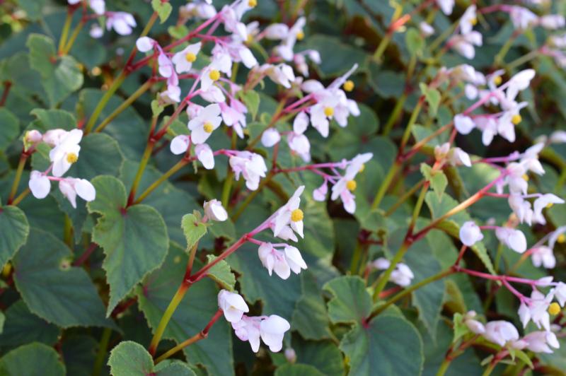 Hardy plant produced from tubers. Large fleshy pale green heart shaped leaves, red underneath. Plants have white arching sprays with reddish buds and white drooping flowers. Partial to fairly deep shade in humus rich, moist, but well drained soil. Plant will self-seed. Zone: 6 to 9. Tolerates heavy shade and Black Walnut. Good shade border plant or unusual addition to dappled shade of a woodland or shady hillside garden. Itβs late to appear making this a great follow up plant for bulbs that go dormant or dicentra spectabilis and Virginia bluebells.