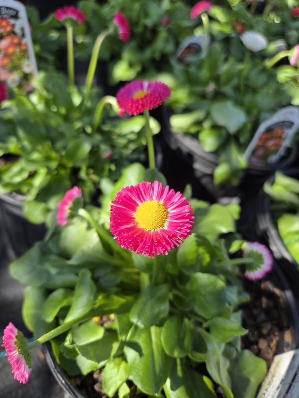 A clump forming plant with spoon shaped, toothed foliage. Flowers are borne on single stems and have a yellow disk surrounded by a ray of petals. Blooms from early to late spring. Delicate semi double blooms in varying colors with yellow centers. Plant in a cool site in full sun to partial shade in average soil. Native to Europe.