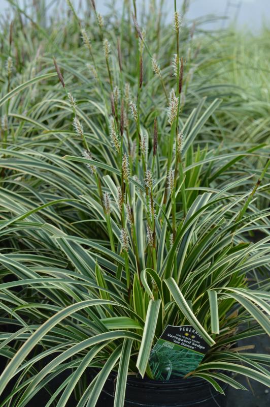 Clumping, evergreen sedge with vigorous strong shiny green leaves with bright white variegation on the edges. Average to rich soils in full to part shade.  Drought tolerant once established. Zone 5 to 9. Effective as a groundcover and in mass plantings for a shady area. Deer resistant.