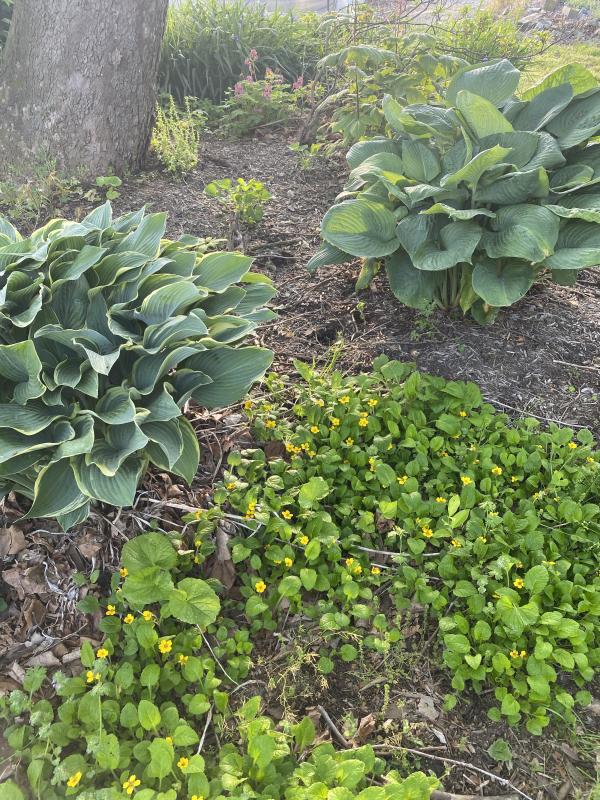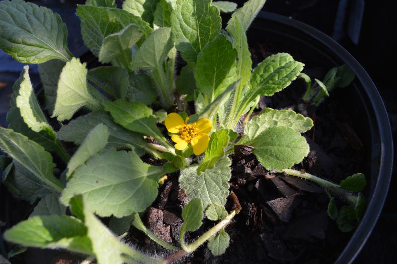 Native wildflower. Long blooming, clump-forming ground cover with fuzzy, dark green, triangular leaves. Charming yellow star-like flowers bloom profusely in spring. Golden yellow, star shaped flowers. Blooms in mid spring to early fall. Full sun, full shade or partial shade in well drained, fertile soil. Attracts pollinators.