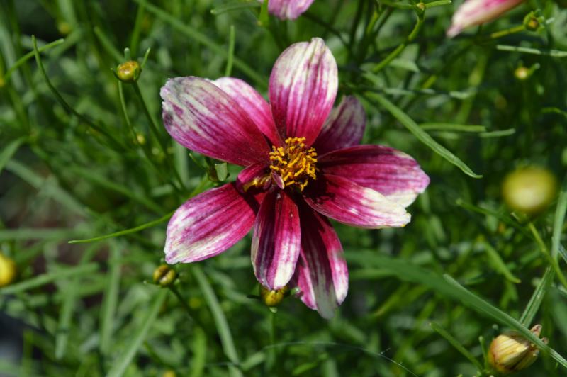 Forms a compact rounded mound covered with rich colored flowers. The flowers cover the bright green, threadleaf foliage for a showy midsummer display. Tough, easy to grow perennial for full sun in dry soil. US native. Zone 5-8. Good drainage over the winter is a must. Excellent sun-loving border plant. Combine with liatris, daisies, dianthus, salvias, helianthemum, and baby's breath.