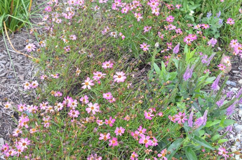 Large, rose red flowers are held above a mound of thread-leaf foliage. A visitor favorite to the Mt Cuba coreopsis trials. Thrives in a wide range of growing conditions. Loves full sun and well drained soil, drought tolerant once established. Coreopsis are native to the US. Zone 5-10. Plant in sunny rock gardens or toward the front of sunny borders for all summer color. Plant with yarrows, crocosmia, salvia, coneflowers, daisies, and hyssop.