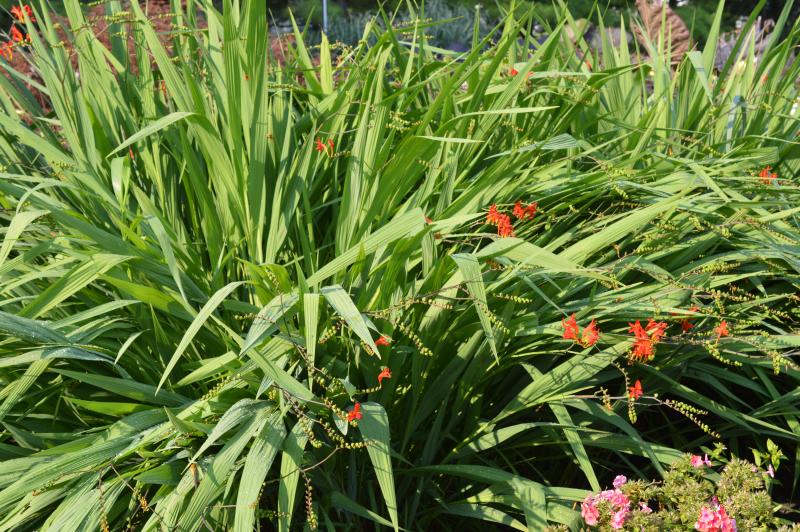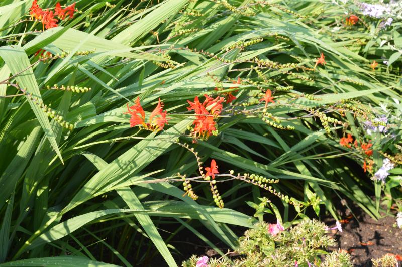 Sword-like foliage growing from corms that spread to form tight clumps. long arching drooping flowers. Maoist, humus rich soil in full sun. may need some extra winter mulch. Zone 5-9. Mix with Coreopsis, Phlox, Lavender, Goldenrod, Salvia, and Veronica. Best when planted in clumps.