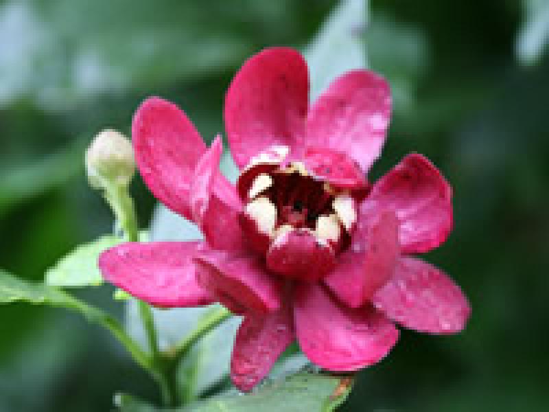 This Sweetshrub blooms deep pink, almost red flowers along its stems, and look especially bold against the bright green, large leaves. This shrub has an irregular, open form if left alone. A fantastic addition to the landscape, take advantage of the sweet, apple-like fragrance by planting near an entry or outdoor living space.