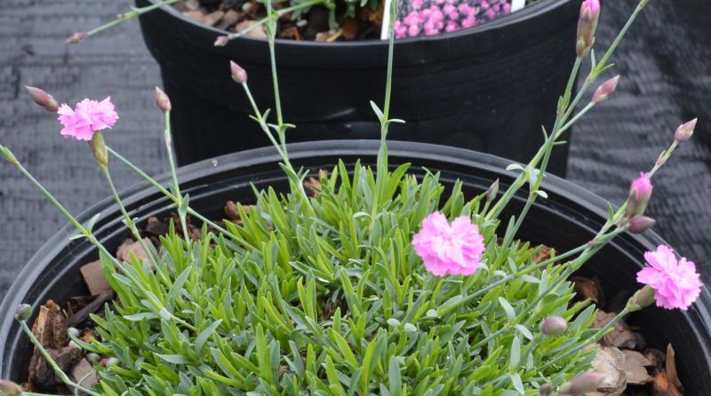 Sturdy perennial with fragrant blossoms above heavy mats of grayish foliage. Best dianthus for difficult sites, thrives in heat and drought. Zone 3-9. Use in rock gardens or borders with lambs ears, Artemesias, Campanulas, Thymes, Sedums, and Yarrows.