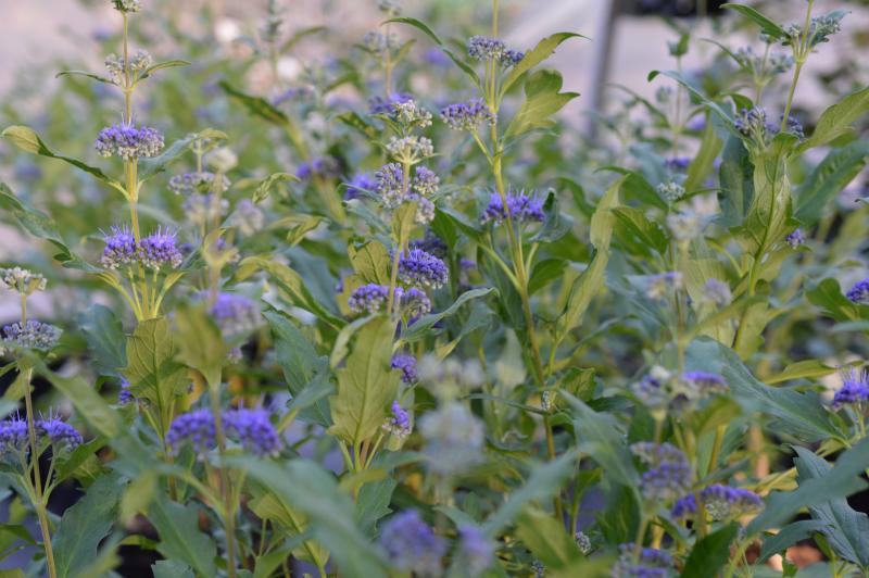 Both the deep-indigo flower clusters and the green deciduous foliage of 'Grand Bleu' Bluebeard are highly fragrant, helping to attract loads of pollinators in the later half of the season. This shrub is a great addition to perennial or shrub boarders, as well as  in mass plantings, or as a low hedge.