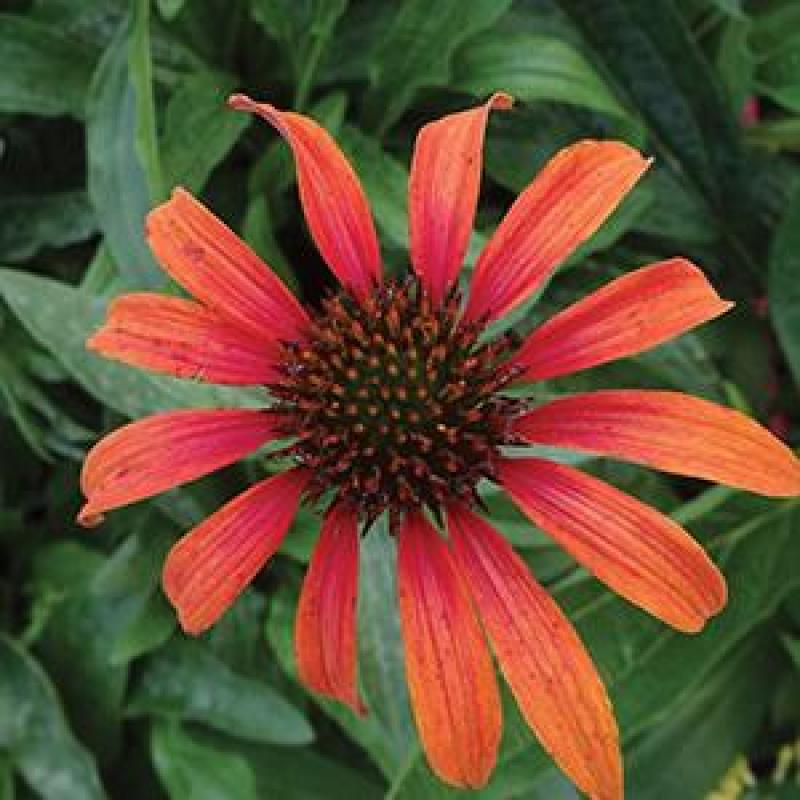 A vigorous coneflower with large, non-fading, tomato-red flowers with dark central cones. Plant has well branched, upright stems that produce over 20 blooms per plant. Plant in a sunny site with well drained, fertile soil. Echinaceas are native to the US. Zone 4-8. Dependable summer bloomer for borders or wildflower gardens. Plant with yarrow, rudbeckia, knautia, ratibida, centranthus, boltonia.