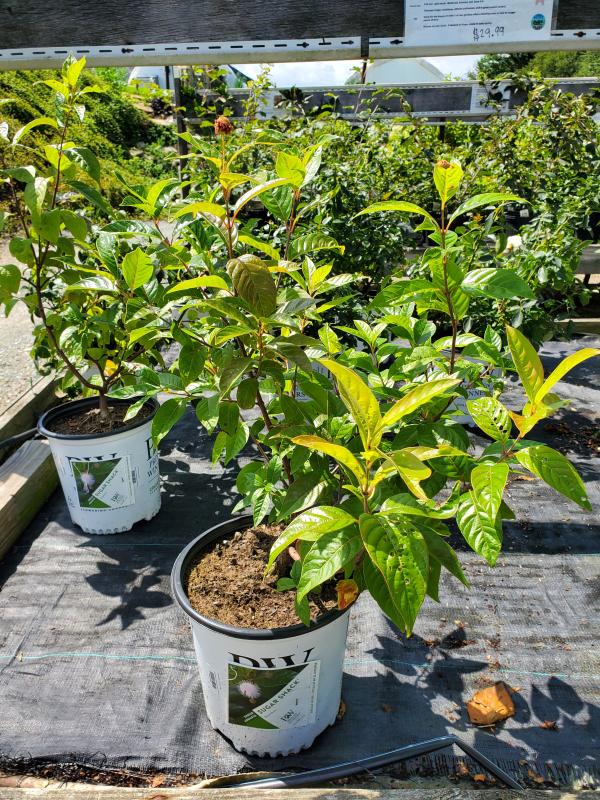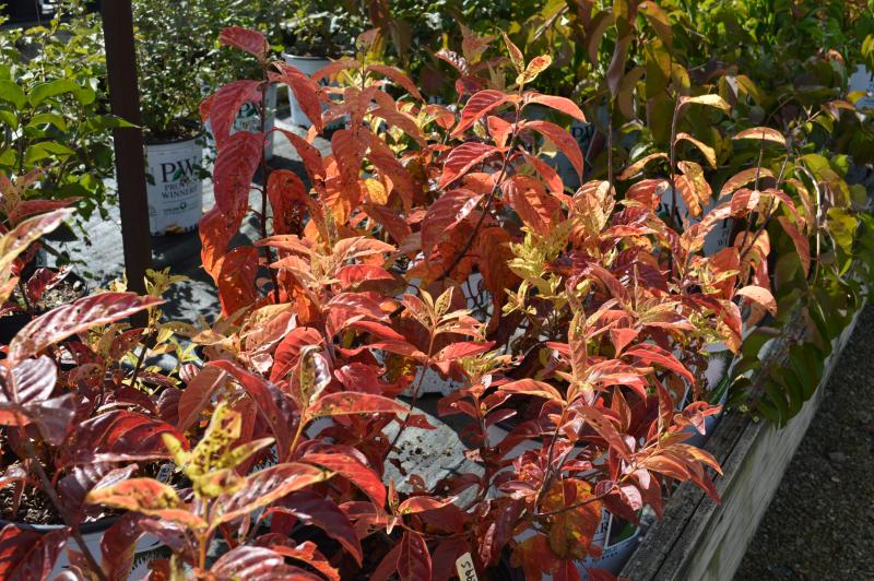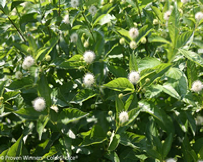 Cultivated from the native Buttonbush of the southeast, 'Sugar Shack offers multiple seasons of interest. In spring, fragrant, white, spiky flower heads blooms, attracts loads of pollinators. Come fall those flowers have become round red fall fruits that will persist through winter. Foliage emerges red, matures to glossy dark green, and finally turns brilliant shades of yellow, orange, and red in fall. With good erosion control and a high tolerance of boggy condition, consider planting ‘Sugar Shack’ on slopes or in low lying wet areas or rain gardens.
