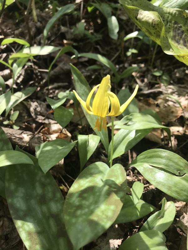 Trout Lily has green basal leaves and blooms a single yellow lily shaped flower. They do best in part to full shade. Trout Lily likes moist, humusy soil. Once plants are established, it is best to leave them be. Great for Pollinator and Shade gardens. Zones 3-8.
