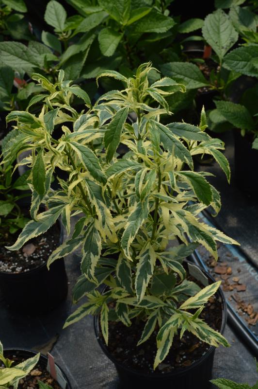Midsize, bushy mound of toothed dark-green leaves, boldly edged in creamy yellow. Divide in spring every 3 to 4 years if desired. An easy-to-grow perennial with no bad habits. Plant in moist, well drained soil in full sun to partial shade. Zone 4-9. Bold late season bloom for back of border or woods edge. Plant with fall asters, black-eyed susans, boltonia, and grasses. Great butterfly garden plant.