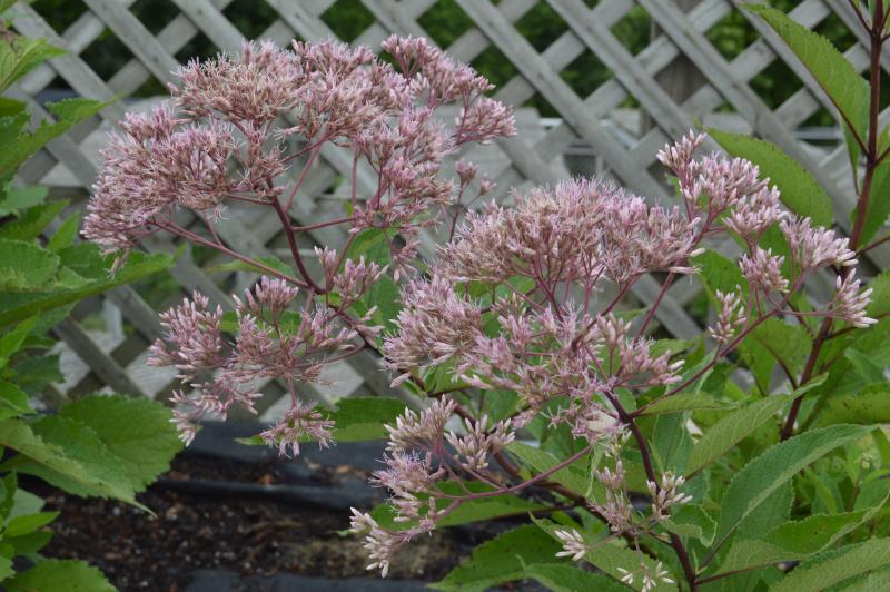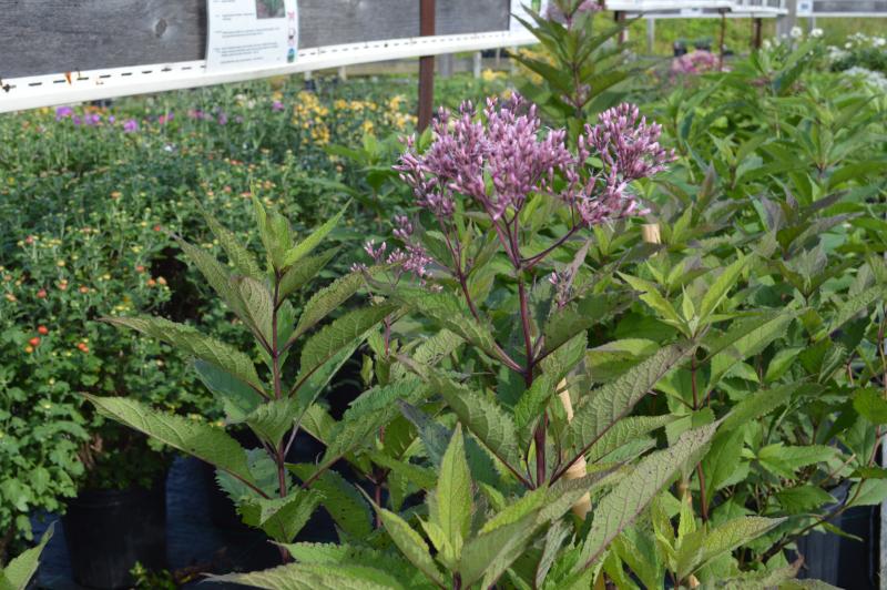 Large clumping plant with coarsely toothed foliage. Purple stems ending in huge clusters of long-lasting flowers. Also known as White Snakeroot. Excellent cut flower. Prefers moist or wet sites in sun or part shade. To reduce the blooming height, cut off in late June and let the plant bloom at the new height. Zone 4-8. Use in an informal meadow, at wood’s edge or near water. Combine with ornamental grasses, ironweed, cardinal flower, asters, bone set, purple cornflower, iris or daylilies. Certainly, a plant for the back of the border.
