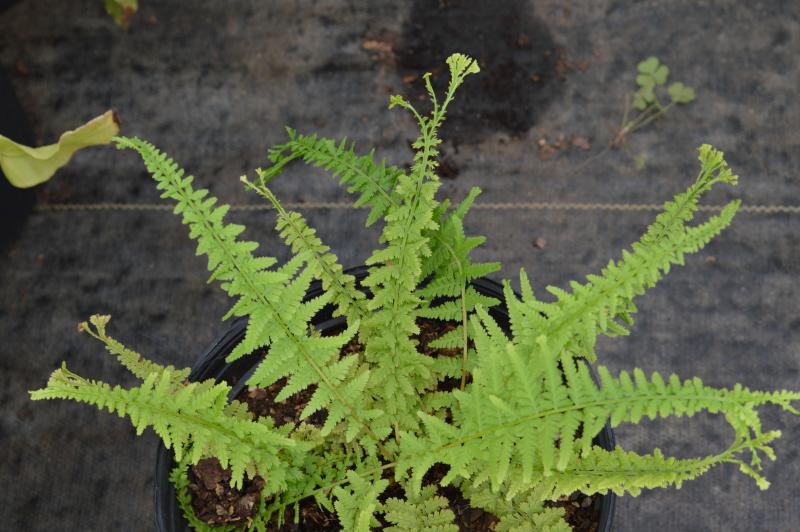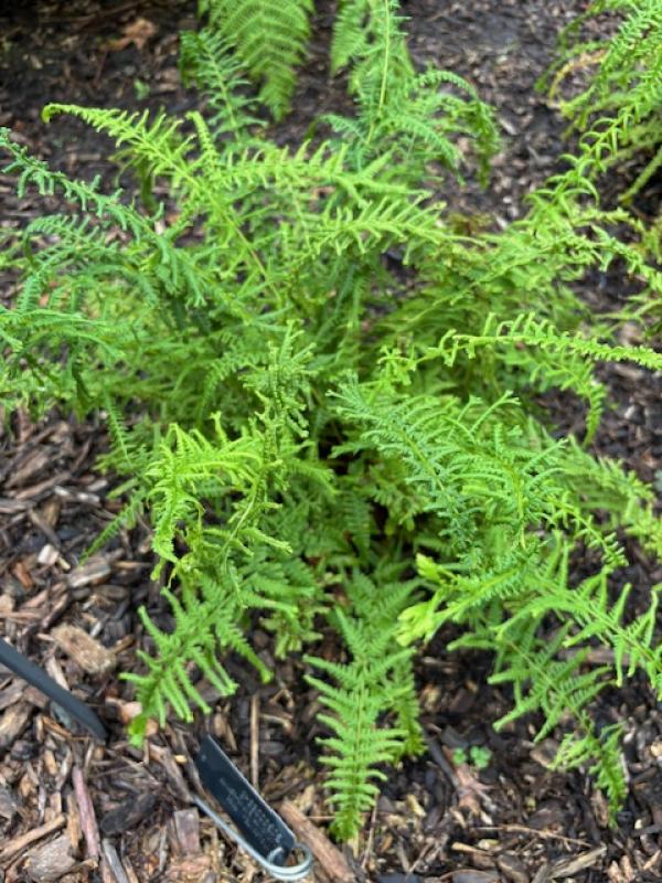 Popular fern during the Victorian Period. Lacy and delicate light green fronds form dense clumps that arch upward and outward giving a 3-D appearance. Not evergreen. Deer resistant. Moist, acid soil in part to full shade. Zone 4 - 9. Good for containers. Ground cover plant for shade. Plant around azaleas and shade shrubs. Light green color contrasts well with dark greens of asarum, helleborus, astilbe, and blue green hosta.