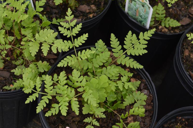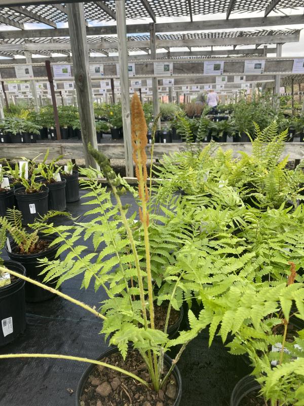 Highly distinctive fern. The fertile fronds give it a very vertical stately appearance. Fronds stand stiffly erect in the center of each crown, surrounded by soft green sterile fronds (leaves) narrow at both ends. Full sun or light shade in moist, acid soil. Likes to be mulched. Lush plant for damp woodlands and streamside. Interplant with spring bulbs, hostas, hardy geraniums, lamium, primroses, ligularia, and rodgersia.