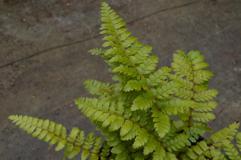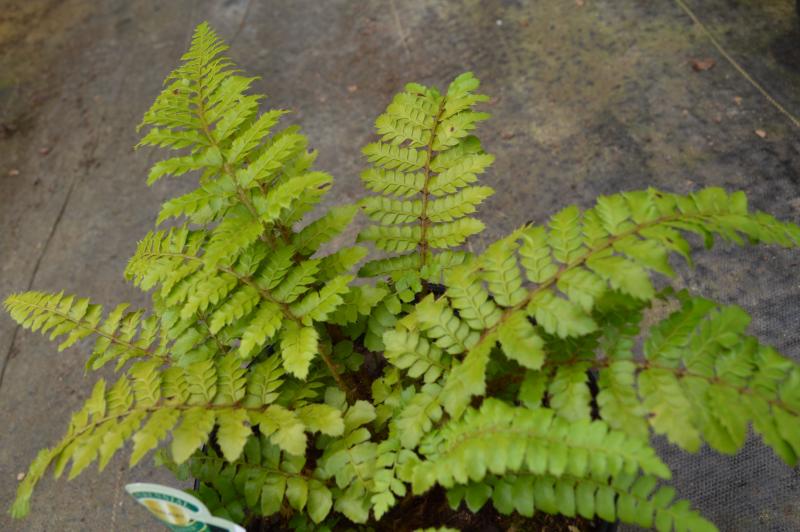 Fern with fronds clustered in a funnel and arched outward. Very attractive with glossy green leaves densely covered with glossy brown scales. Unfurling fronds look like a bears paw.  Easily grown in woodland conditions with cool humus-rich soil. Zone 6-8. Plant in wooded area with hosta, dicentra, asarum, epimedium, heuchera, woodland spring bulbs, and aquilegia. Deer and Rabbit Resistant.